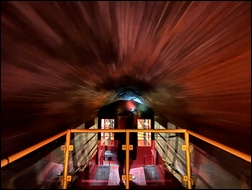 トンネルを抜け、一気に高度を稼いで街を見下ろします。